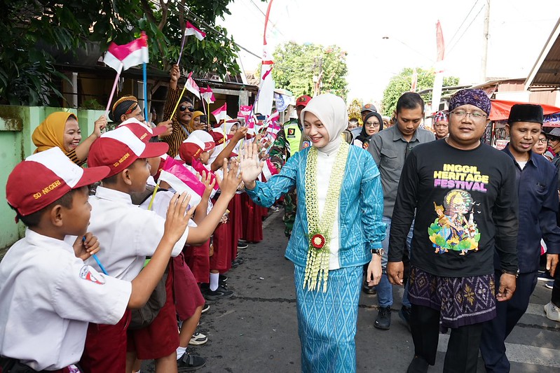 Wali Kota Kediri Vinanda Prameswati memberangkatkan Kirab Budaya Inggil Heritage Festival, yang diselenggarakan oleh LPMK Lirboyo dan Paguyuban Siti Inggil, Sabtu (19/7/2025).