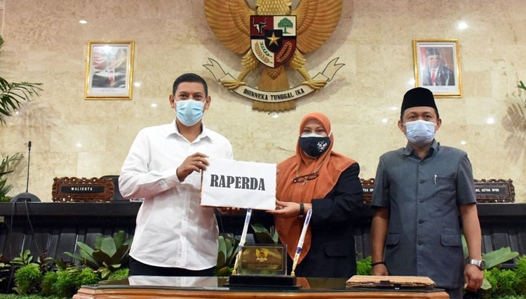 Walikota dan Wakil DPRD tunjukkan berita acara persetujuan Raperda (Foto: Protokol dan Komunikasi Pimpinan Sekretariat Daerah Kota Kediri)TIMESINDONESIA, KEDIRI – Delapan Fraksi DPRD Kota Kediri menerima dan menyetujui Rancangan Peraturan Daerah (Raperda) Pertanggungjawaban Pelaksanaan APBD Kota Kediri Tahun Anggaran 2020.